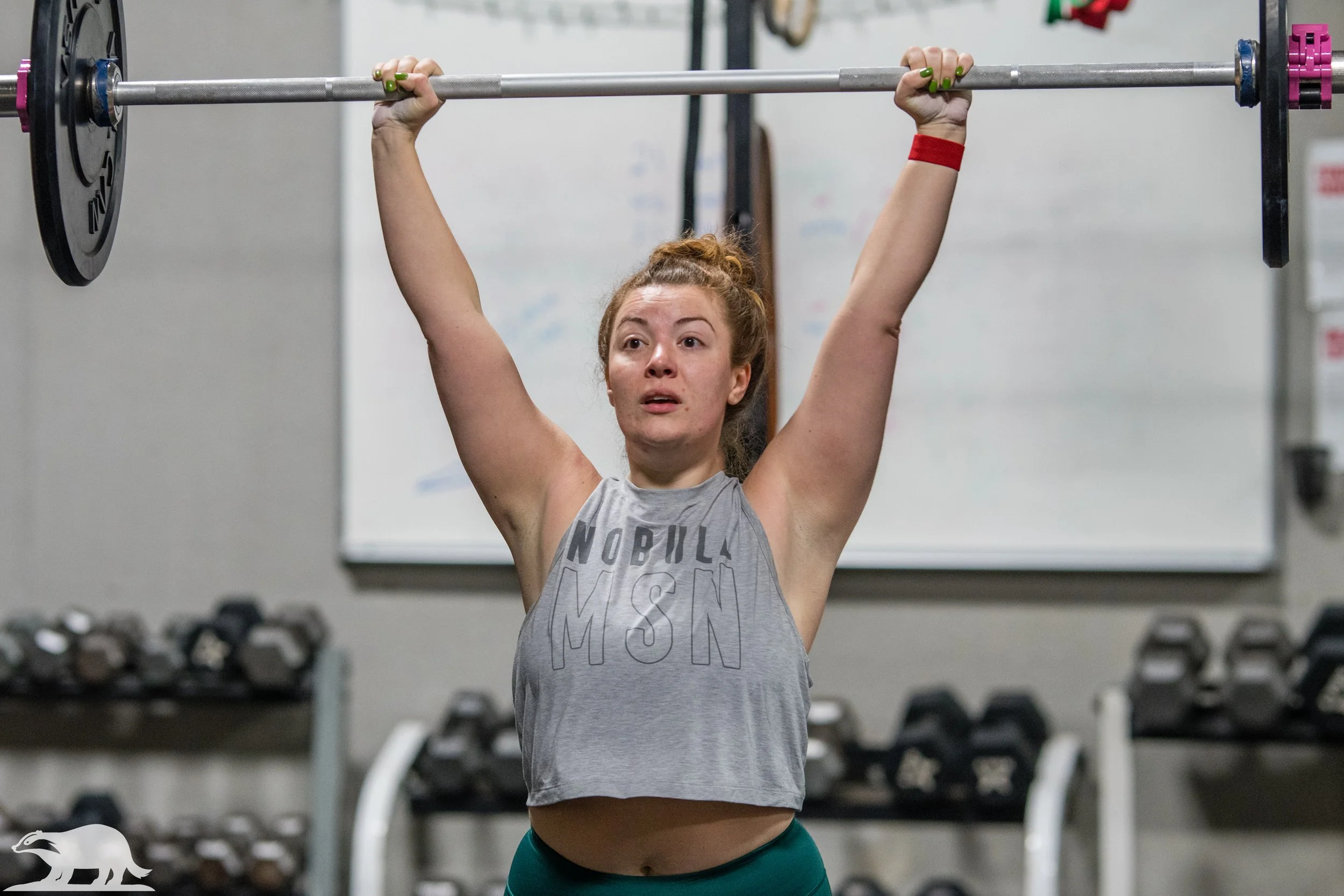-Push Jerks: These can be done as short touch and go reps or done as quick singles. We want to focus on a good set-up position on each rep with the chest staying tall on the dip and drive. Work to receive thar bar high on the front rack and dip straight down before punching overhead.