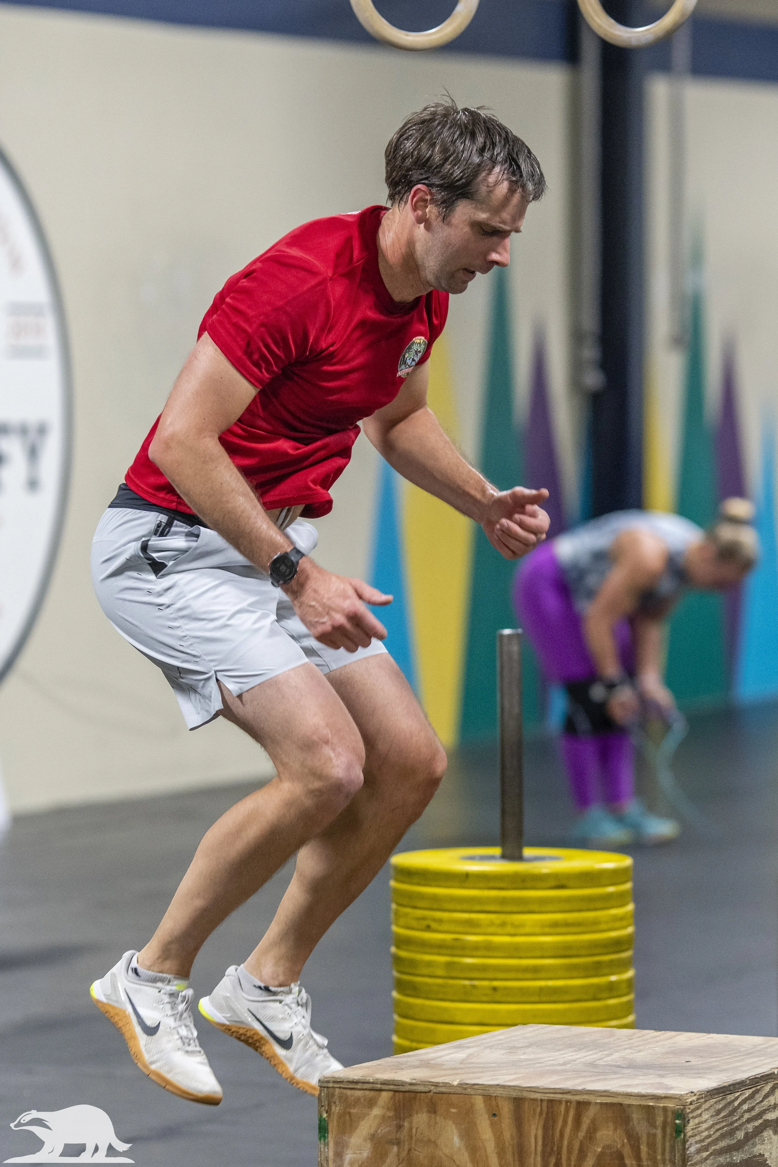-Burpee Box Jump Overs: These should be box facing today and we are looking at staying close to the box and low across with a 2 foot takeoff and 2 foot landing. For this one we want to move to burpee step-ups first and then next to burpees-to-target, and finally just scale to a traditional burpee.