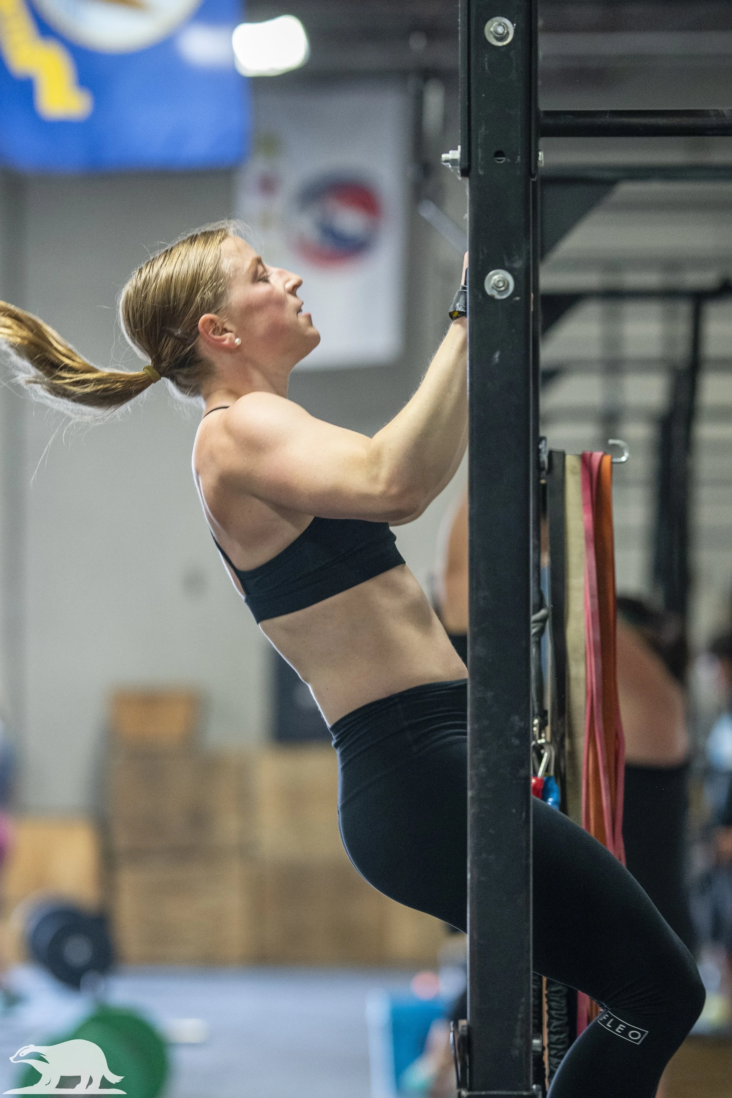 -Burpee Chest-to-bar Pull-ups: Stay under the bar and ideally we have a bar 6 in above reach and we can jump into the chest to bar pull-up. Keep a cadence and rhythm here today. Scale to burpee pull-ups or burpee jumping pull-ups in order to maintain the correct stimulus.