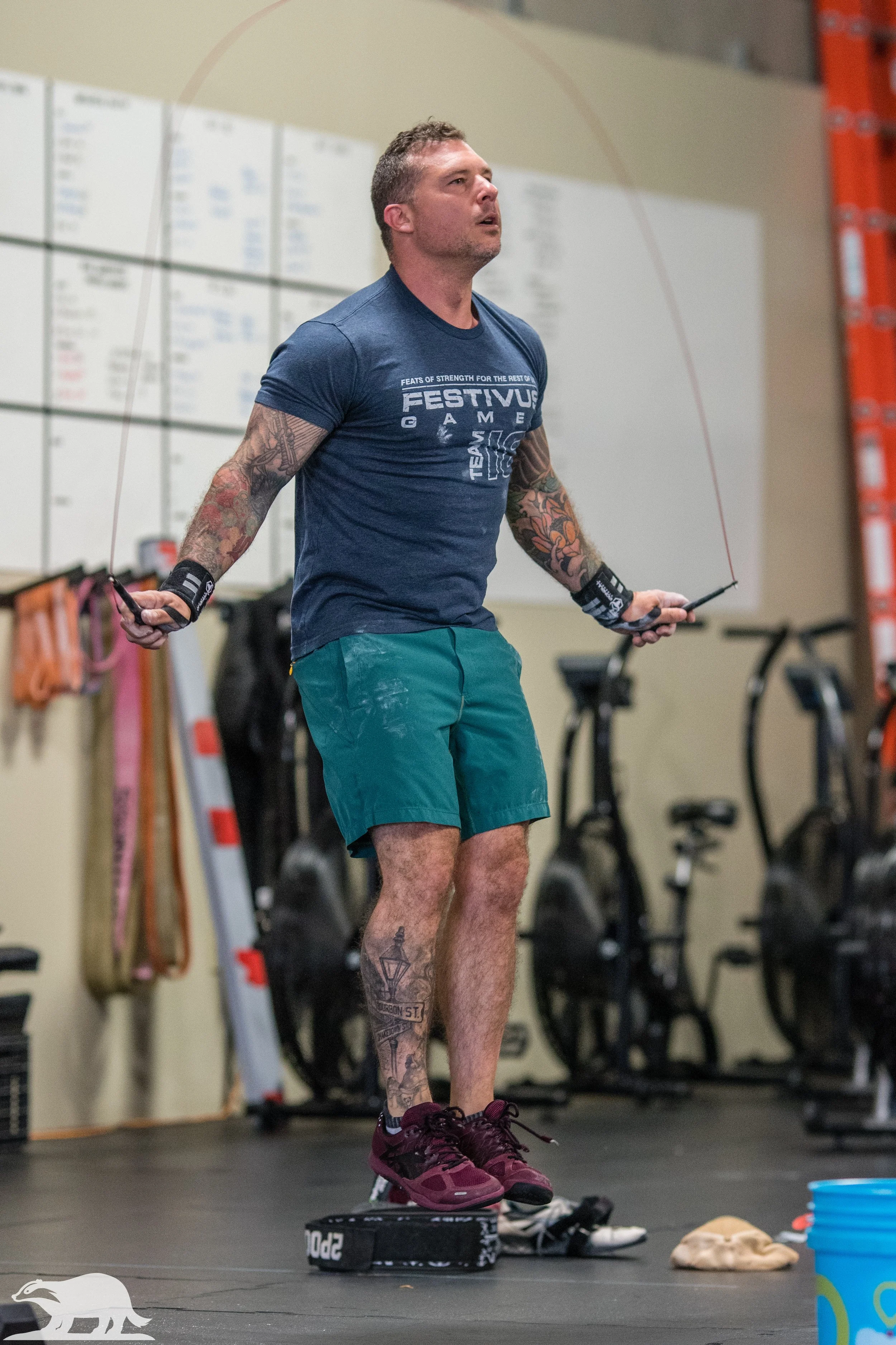 Double Unders: Eyes forward and down with gaze out 4 ft in front of you. Keep the hands at the pockets and focus on flicking the wrist twice to create the double under.