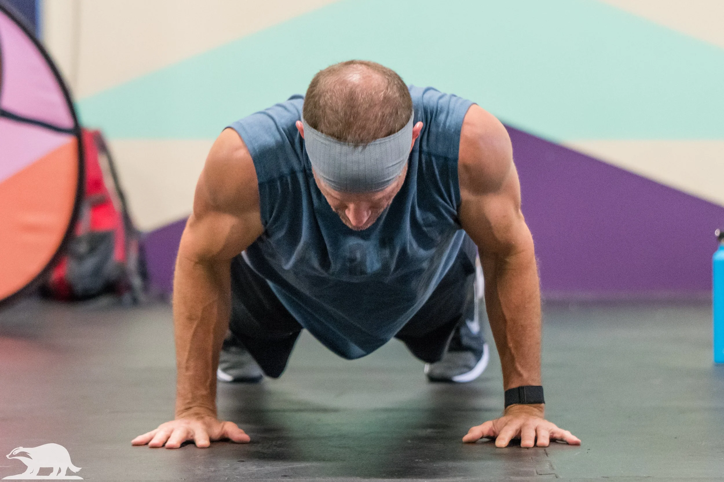 Push-ups: Band assisted push-ups is the scale of choice today to allow for more consistency in position on the push-up.