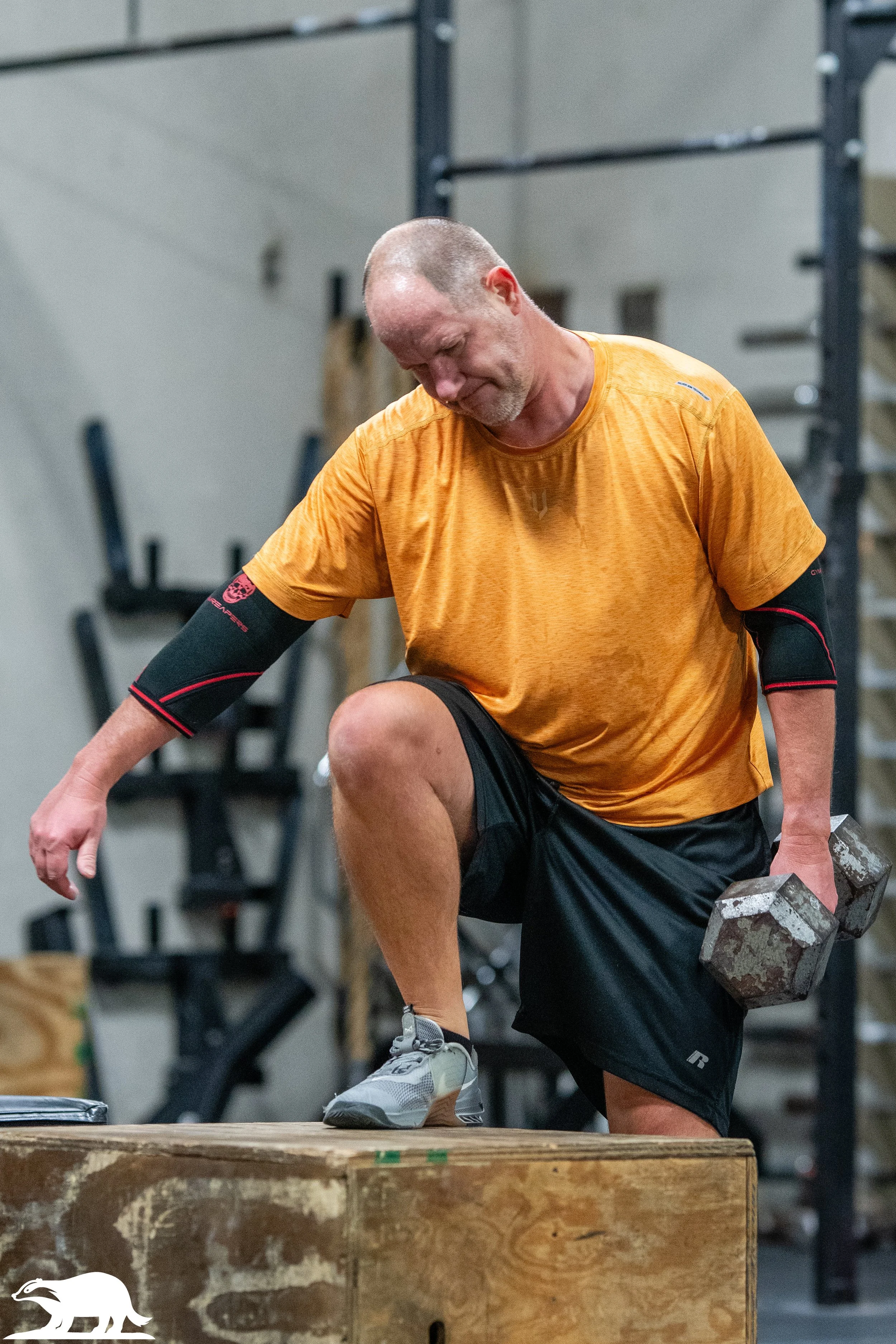 10 Dumbbell Box Step-ups, 50/35 lbs, 20 in