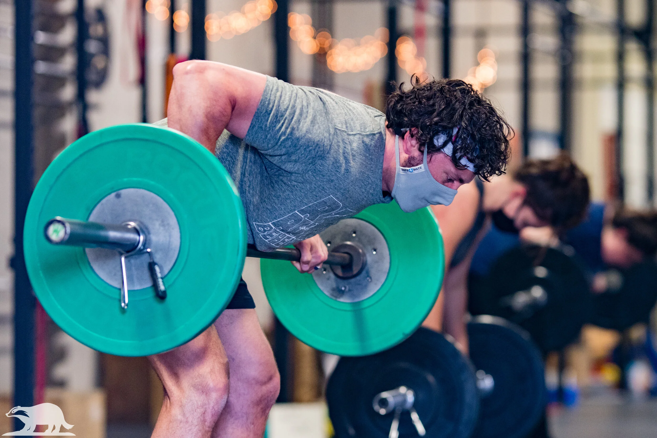 - Strength: Our barbell work today consists of Hang Power Clean + Push Jerk, building to heavy set over the course of 5 sets. Common mistakes in the Push Jerk are lifting the heels off the ground while dipping, knees tracking forward instead of at an angle, and leaning back. Also make sure that in the start position we're in a decent front rack, with the knuckles by the chin and elbows forward.