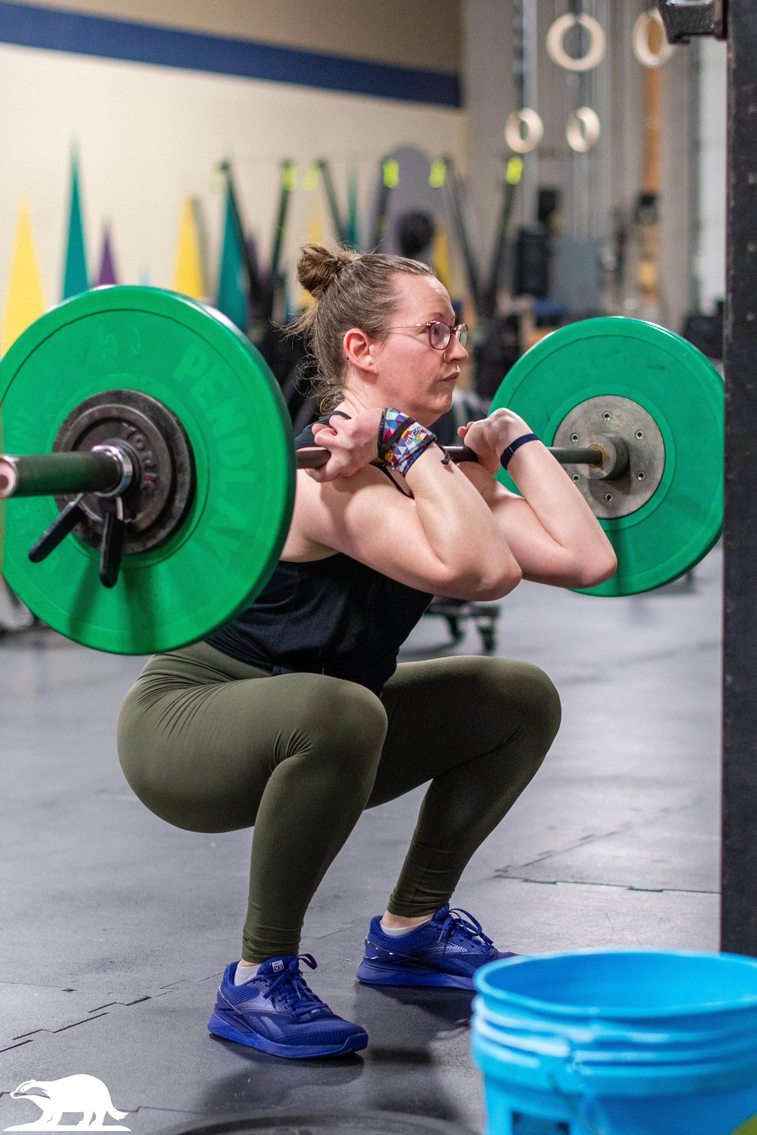 We are getting in a little burner today with a 9:00 minute AMRAP of Thrusters, Chest to Bar Pull-Ups, and Calorie Row. The focus here will be on the Thrusters, leaning into unbroken sets for all rounds up to and through the round of 12 reps. This is key for determining scaling and modifications for your athletes. We have also been spending a good amount of time on the Chest to Bar Pull-Up, so these sets of 9 should be in a range that we will are manageable in 2 sets or less. For our strength piece today focus on the vertical drive on the bar and the line of action as the primary point of performance to target. This will be maintained on the Push Press by thinking about unlocking the knees and pressing our, rooting through the floor. And for the Front Squat, we really want to work for a quality front rack position, ideally with all 4 fingers on the bar with the elbows pressing up and out.
