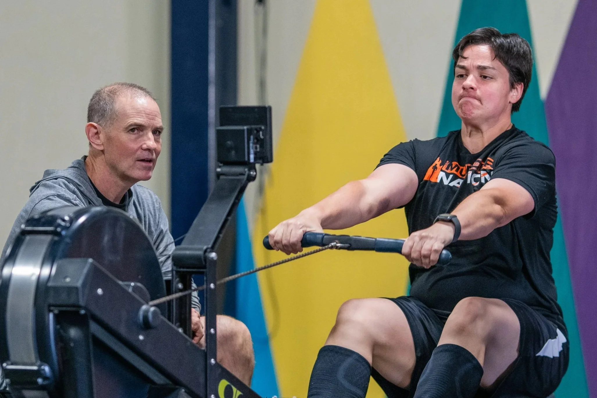 During the strength segment, athletes work through structured sets of bench press, increasing weight across four working sets. Focus coaching on bar path control, stable shoulder positioning, and full lockout. Encourage spotting and consistent tempo under control.