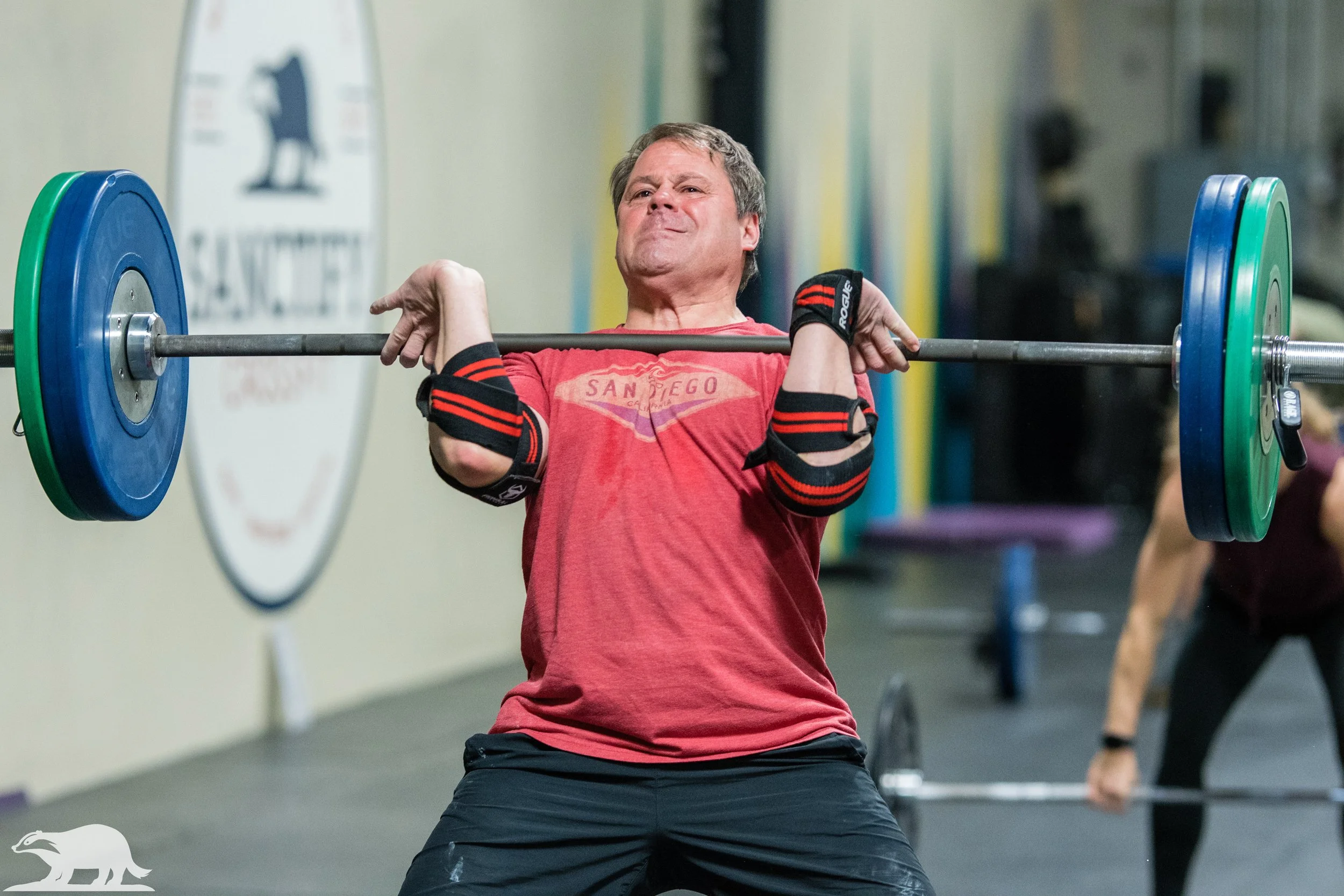 -Wall Balls: Elbows in front of the body, hands underneath the ball, and the ball directly in front of the face. Breathe out when the wall ball is thrown and breathe in as the ball comes back to the body.
