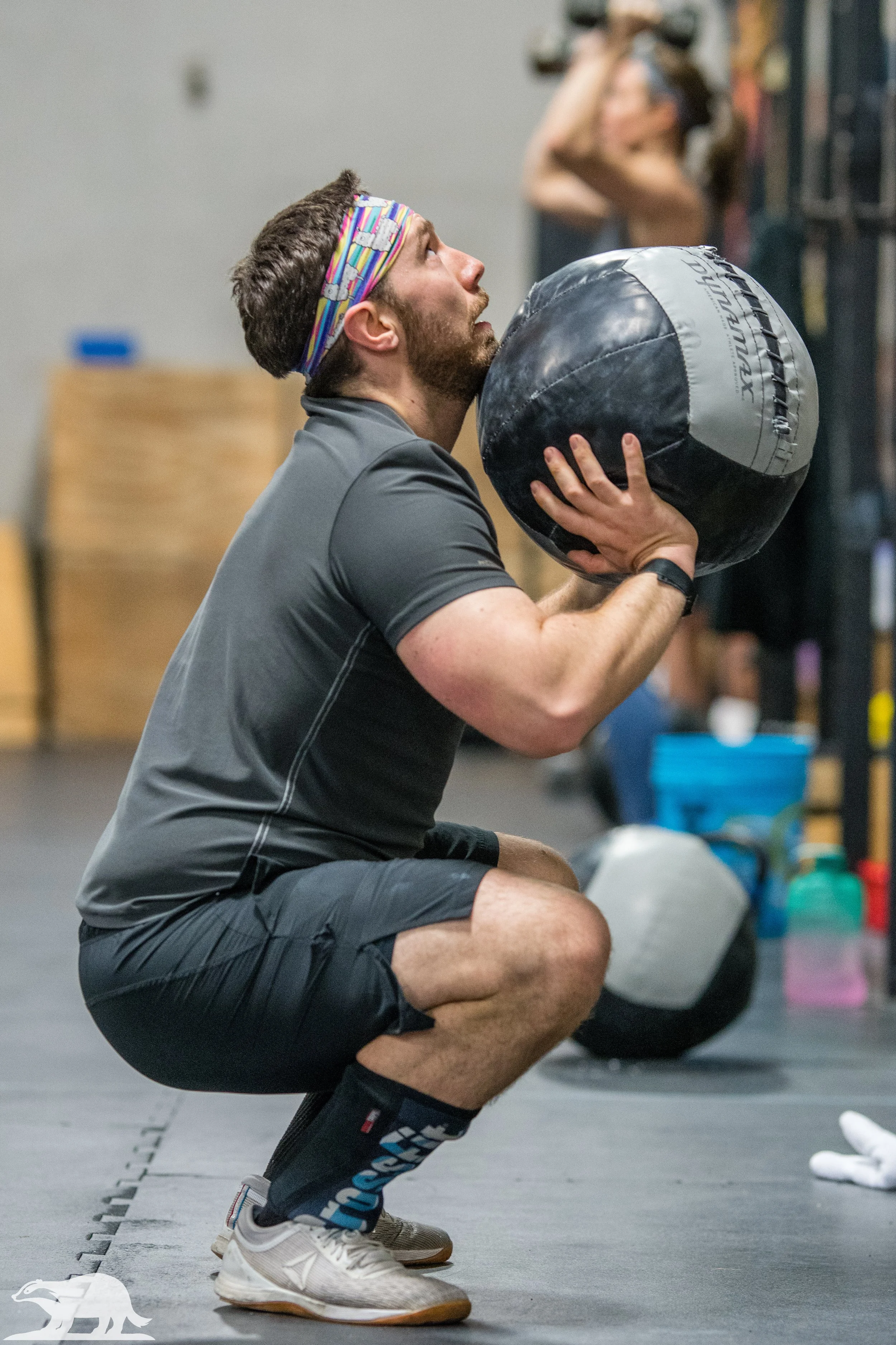 -Wall Balls: Lighten the load initially and then if need be we can sub a light goblet squat or even just air squats.