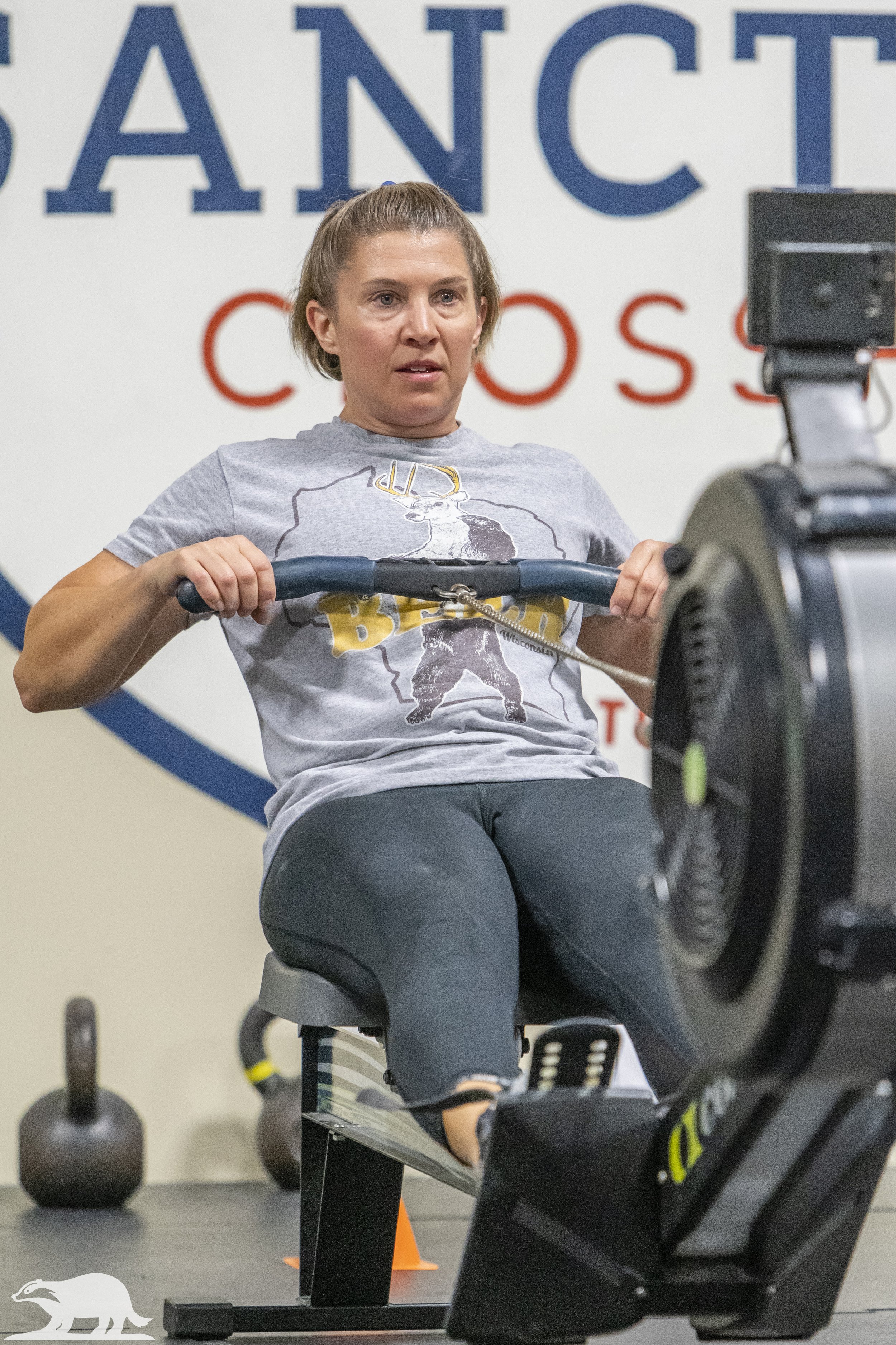 Row Calories: Focus on leg drive through the first half of the pull, then work on the body and arms staying connected through the finish. The chain should stay in a straight chain path throughout the entire drive phase as we finish hard at the sternum. Finishing higher or lower on the body is not ideal and should be worked to be avoided. If needed, scale the row to Ski Erg or Bike Erg calories. The ideal would be Ski Erg, but it is still a change from the Echo Bike to the Bike Erg so it works if needed