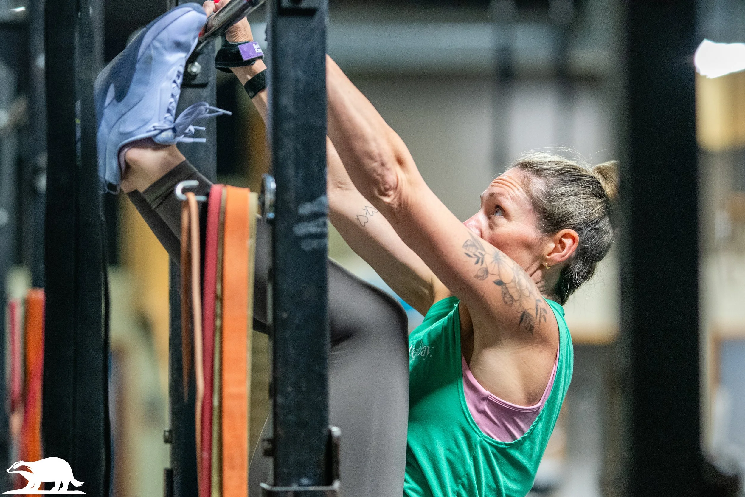 Today’s session builds high-skill conditioning through repeated sprint-style intervals with a gymnastics and rope climb centerpiece. Across eight sets, athletes will complete short runs bracketing core-demanding toes to bar and rope climbs, with 1:00 rest to allow partial recovery and maintain intensity. The focus is on consistency—athletes should aim to hold steady pacing across rounds, using early sets to establish rhythm and saving an extra gear for the final two intervals. Emphasize grip management and efficient rope climb technique during the skill prep, and remind athletes to stay braced through midline fatigue. This is a fast-paced aerobic grind with a strong pulling demand.